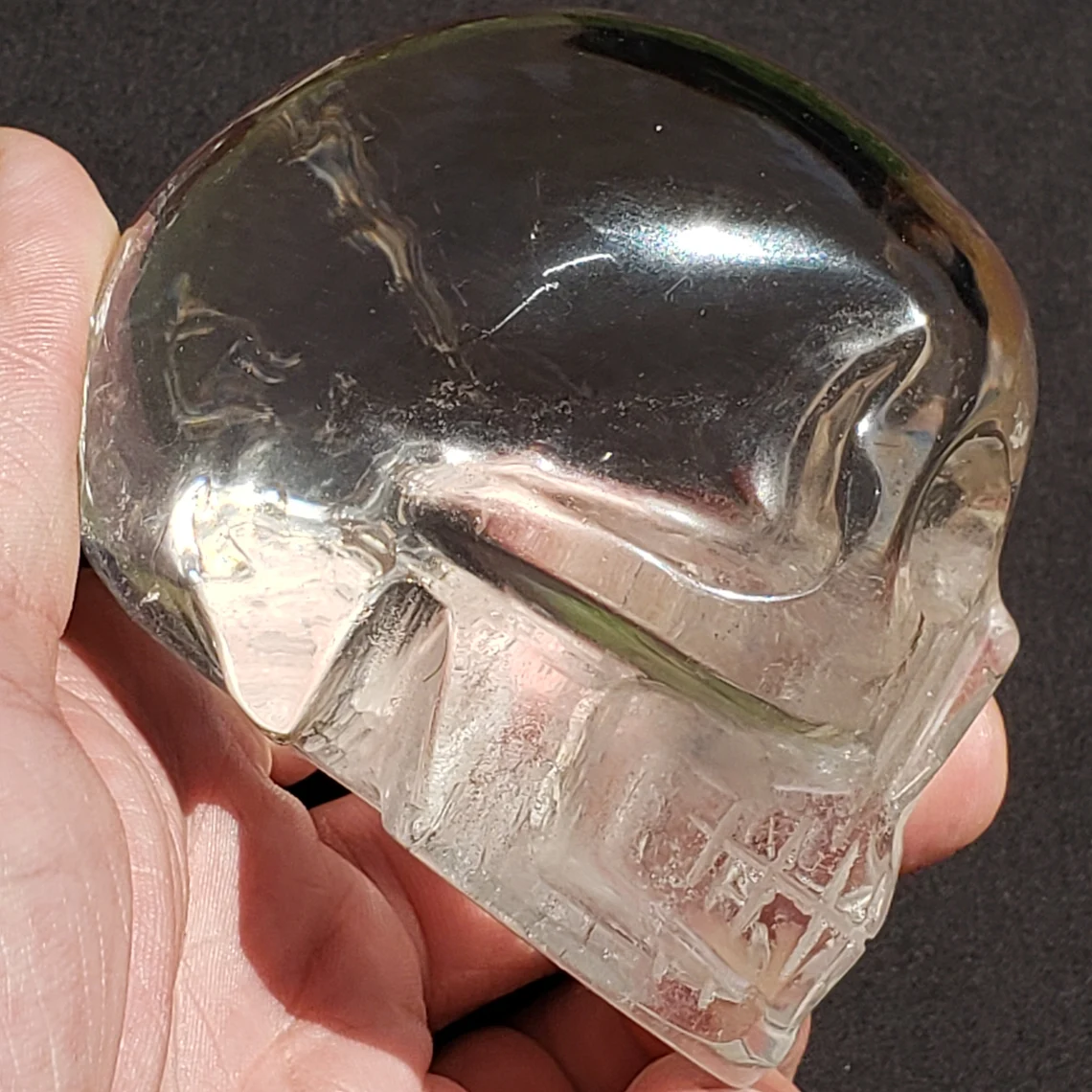 This high quality hand-carved Brazilian Quartz skull is a powerful ally during meditation, scrying, and spellwork. Allow the amplifying property of quartz, and the ancient wisdom of carved skulls, to illuminate and ignite your practice.