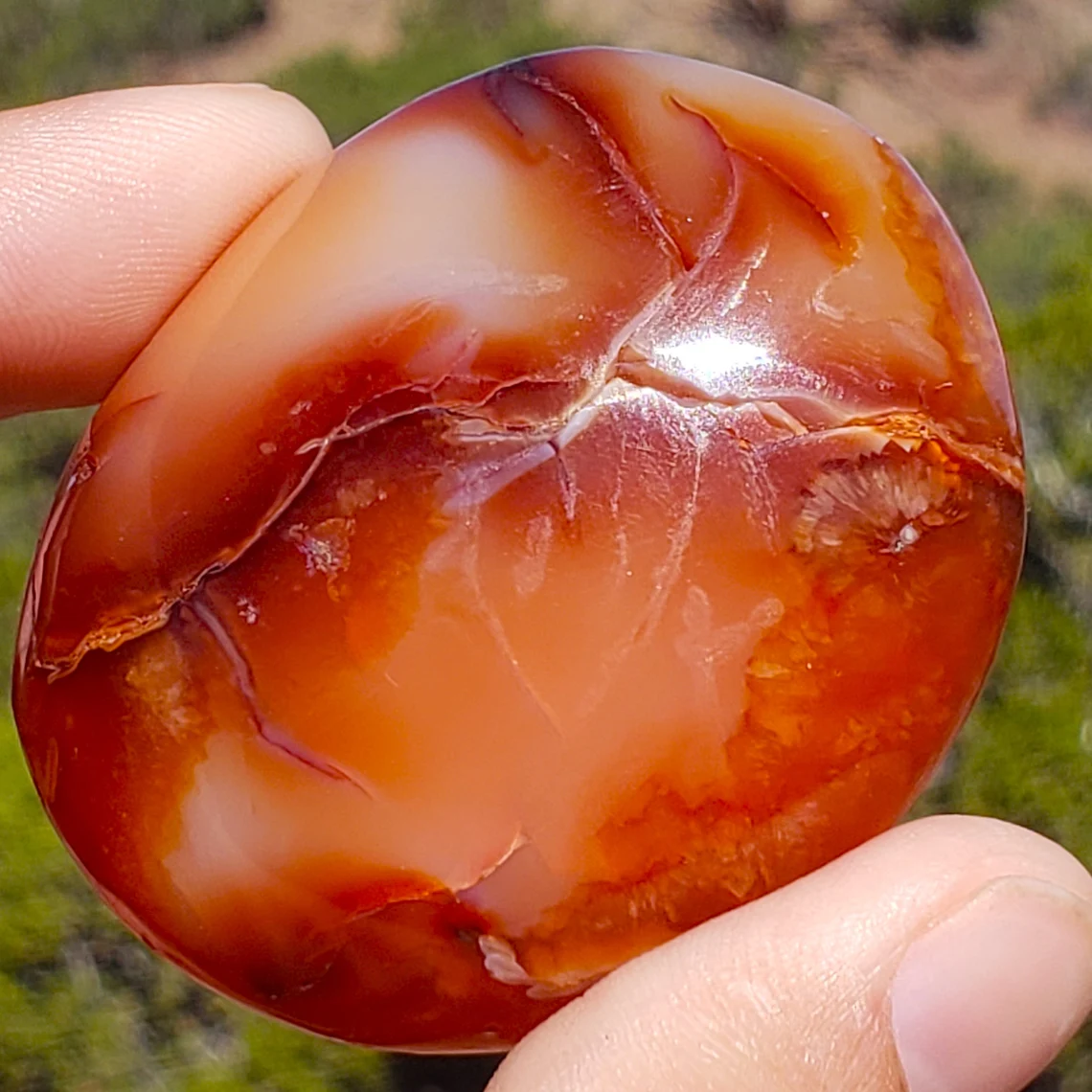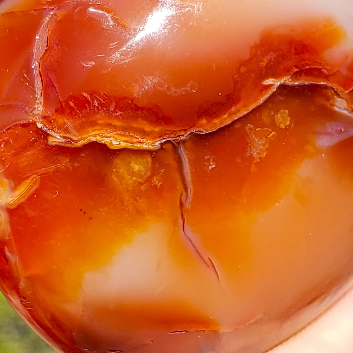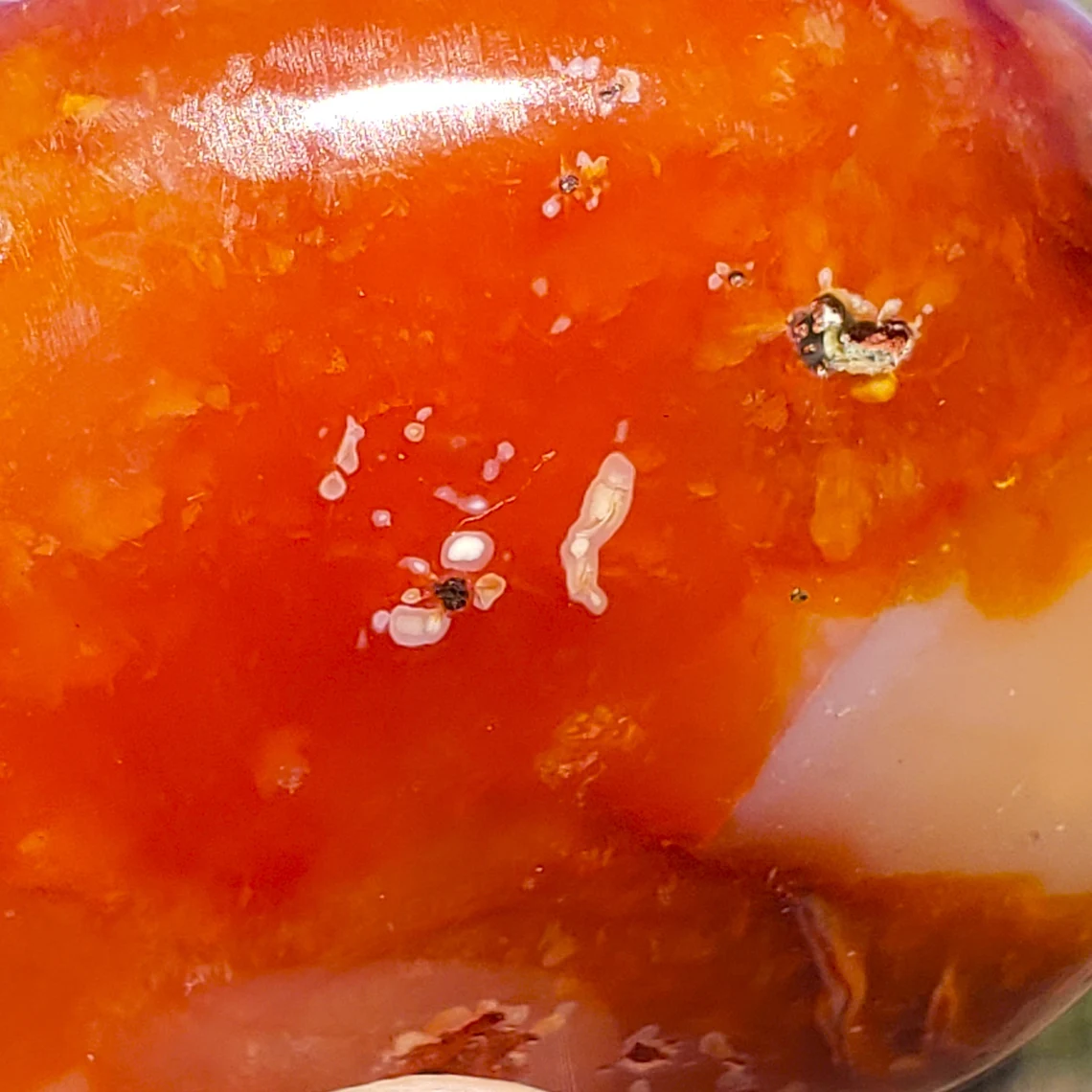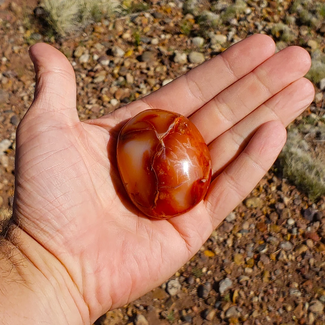 This is a very high quality Carnelian palmstone from Madagascar with beautiful swirls of color. Carnelian is a stone of action, creativity, and passion. It stimulates the lower chakras, and is widely used for physical healing because of its powerful energy.