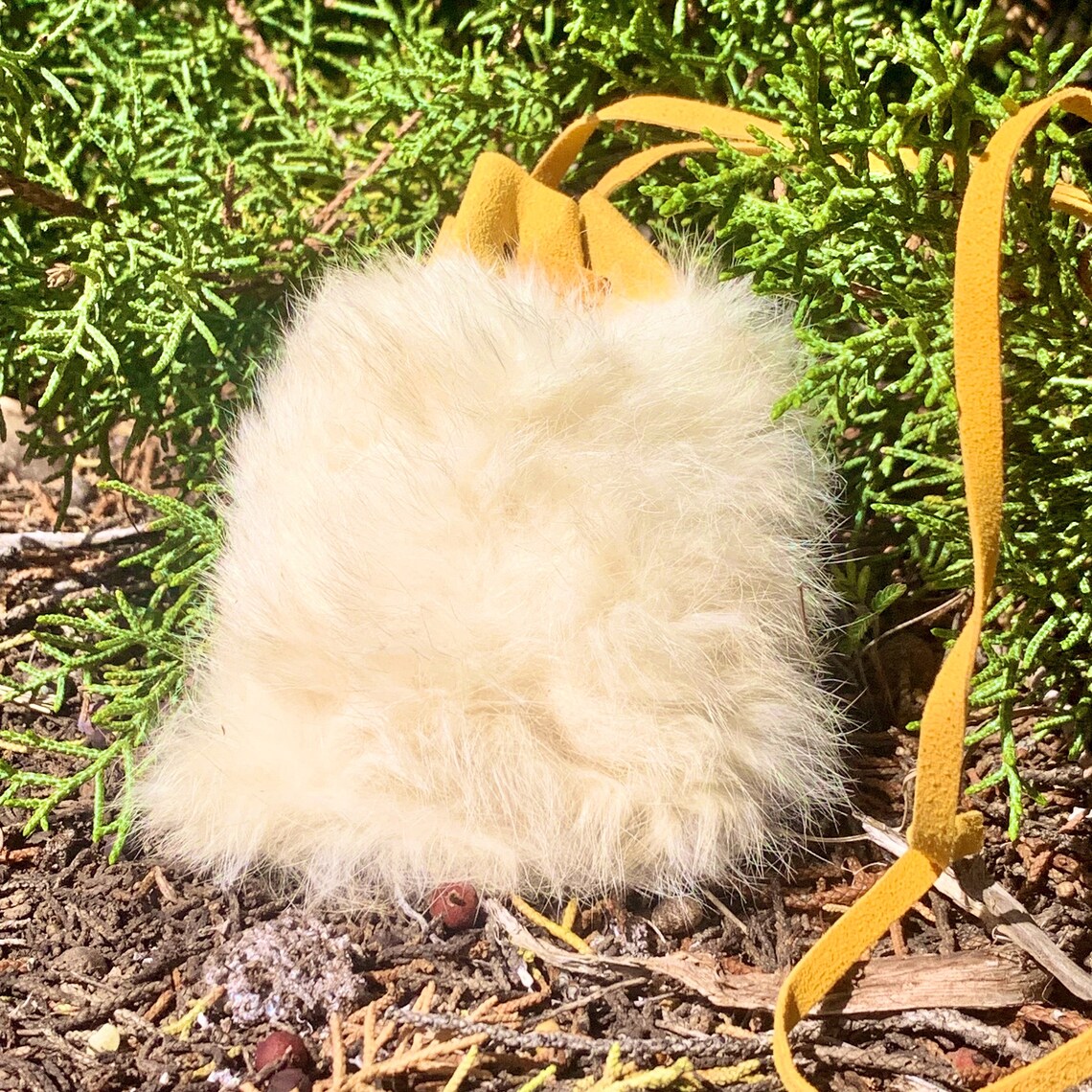 These *leather and rabbit fur medicine bags took me many moons to create, making sure that each item would bring the owner powerful healing not only in the physical body, but in the emotional and spiritual bodies as well. Rabbit fur was chosen for these bags for rabbit’s ability to multiply the energy of the contents while adding a touch of peace. You can use the items in the bag individually, or keep them all together for a potent bag of magic which you can place on your altar, keep on your person, or place in a room needing these particular magical properties. Feel free to add other items to your bag, making it specific to your needs.