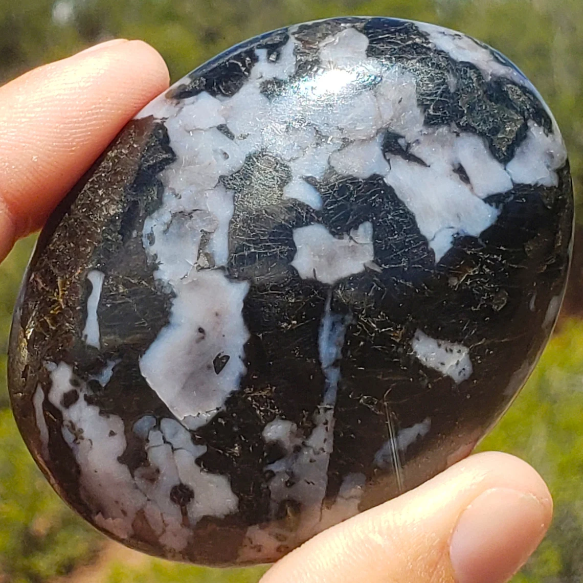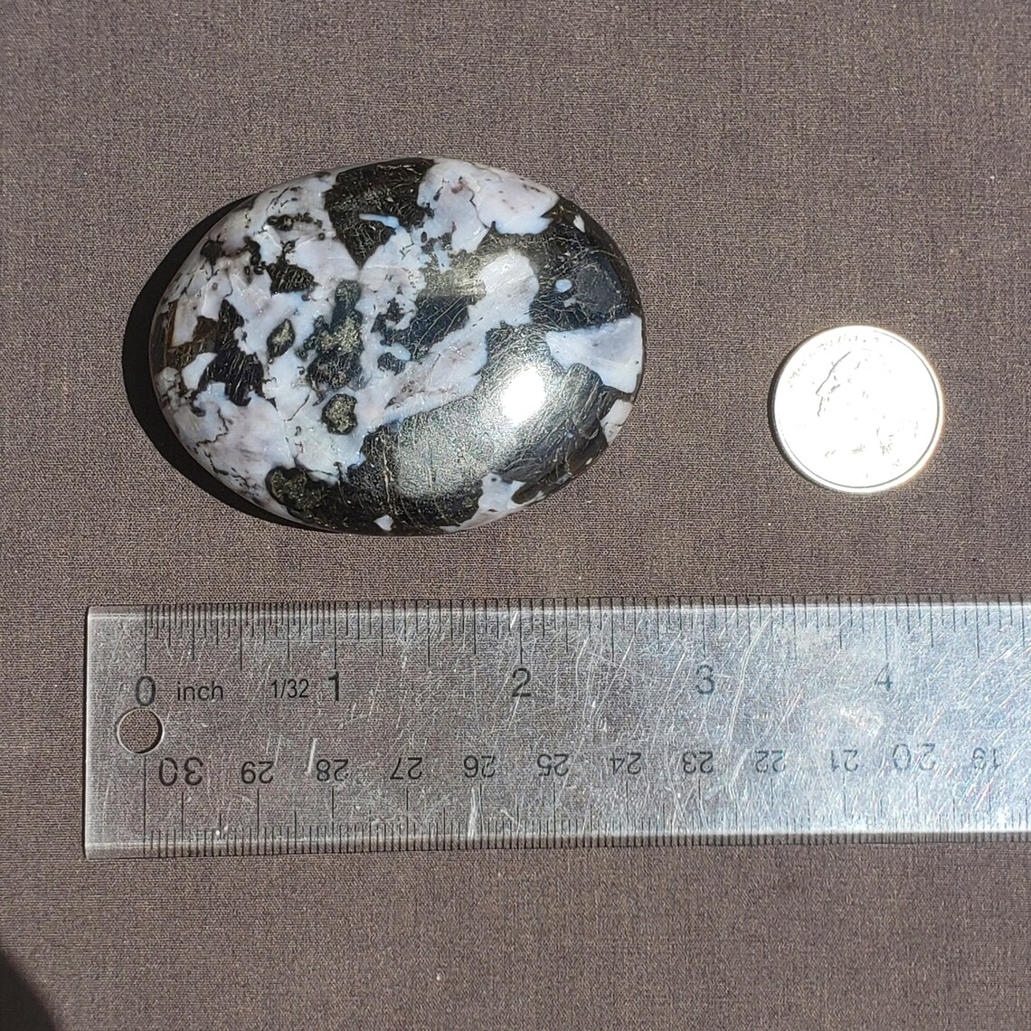 This is a beautiful Indigo Gabbro palmstone, also known as Mystic Merlinite, from Madagascar. This is a great tool for balancing your energies, connecting to guides and your Higher Self, and for Shamanic Journeying.