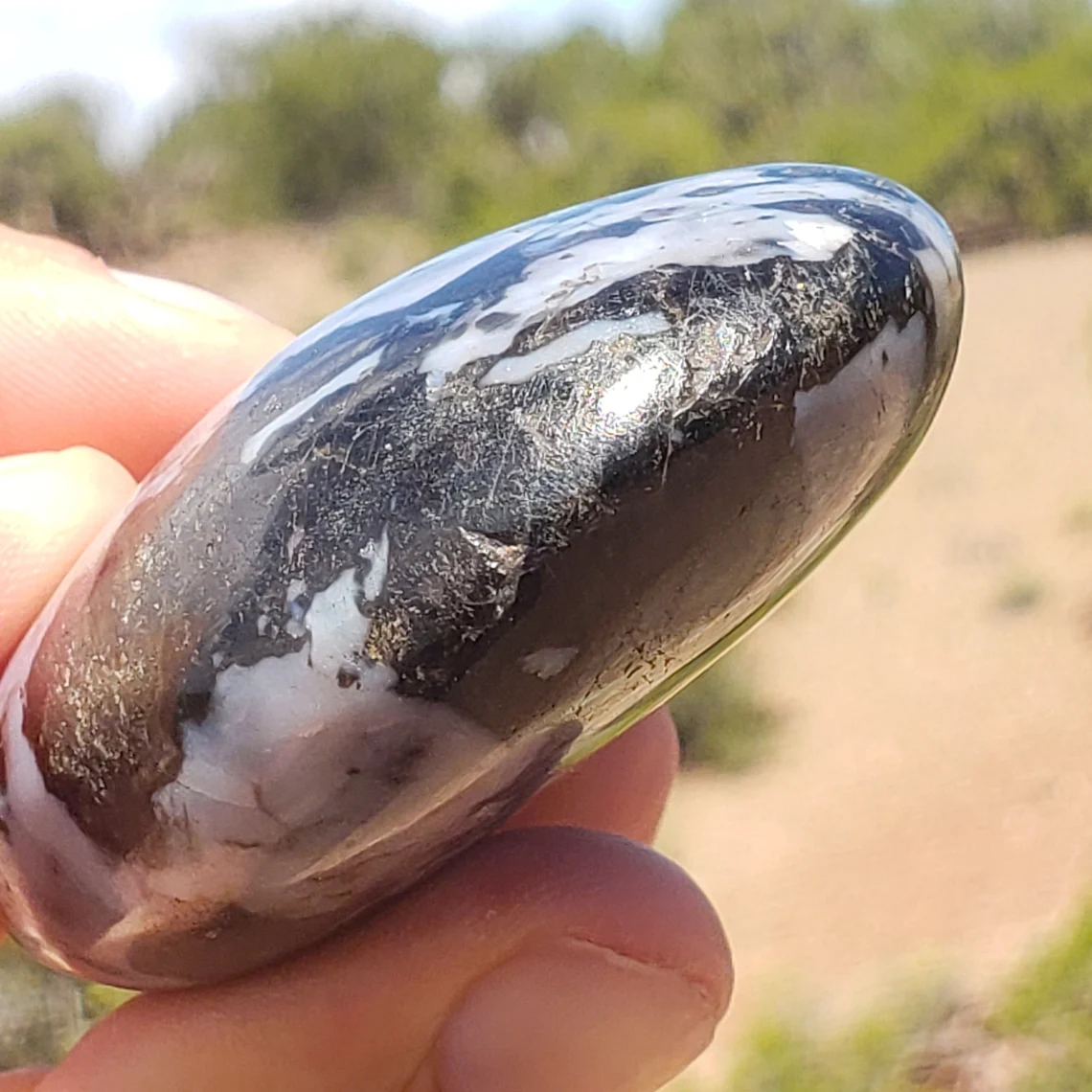 Magical practitioners will love the energy that Mystic Merlinite brings to the altar during any form of healing work or astral travel. Consider placing this palmstone in your receptive hand while wielding your power with your right. You may also want to place Mystic Merlinite in a dish filled with high vibration herbs, oils, or notes written with magical intention.